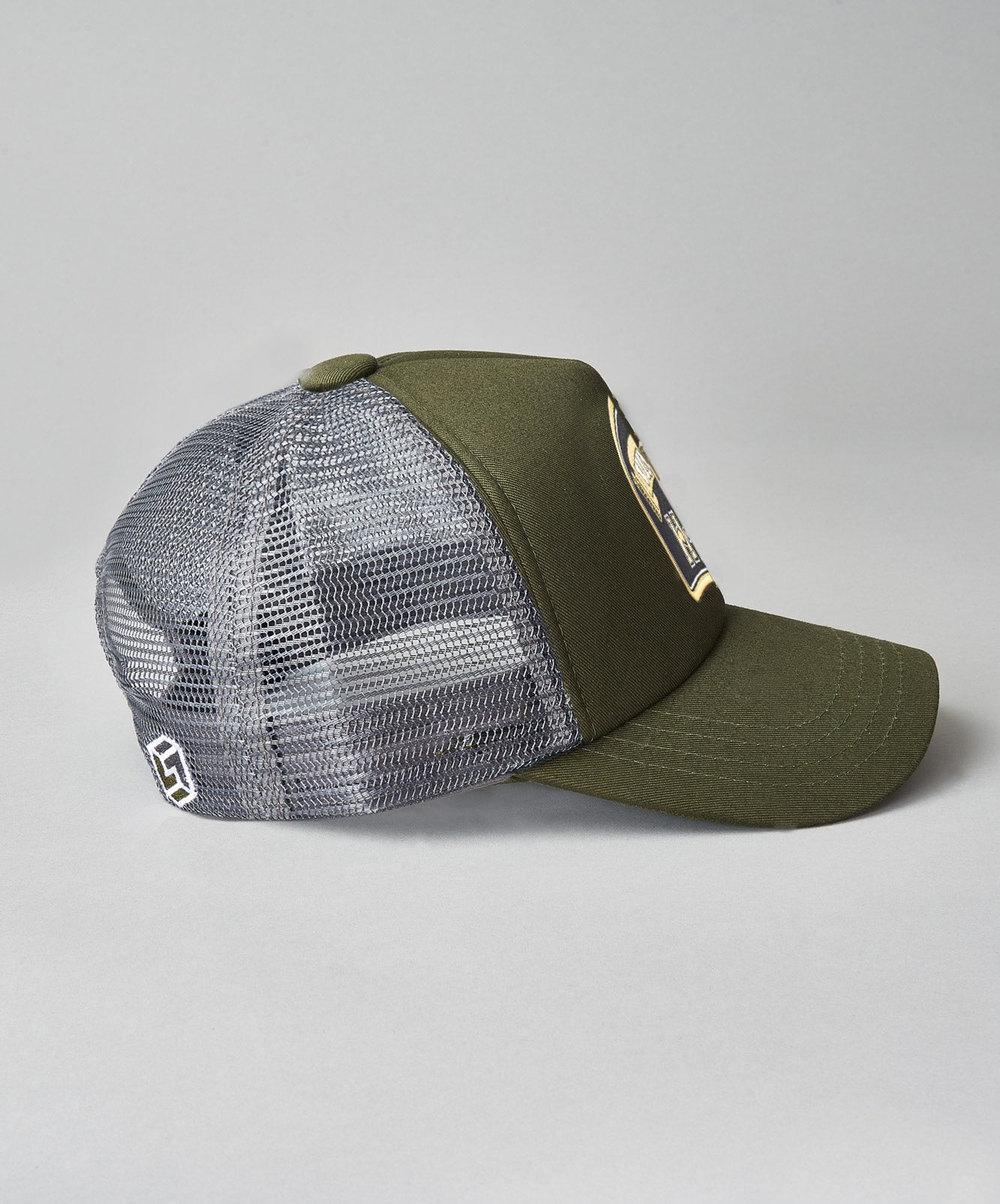 Khaki cotton front with grey mesh back