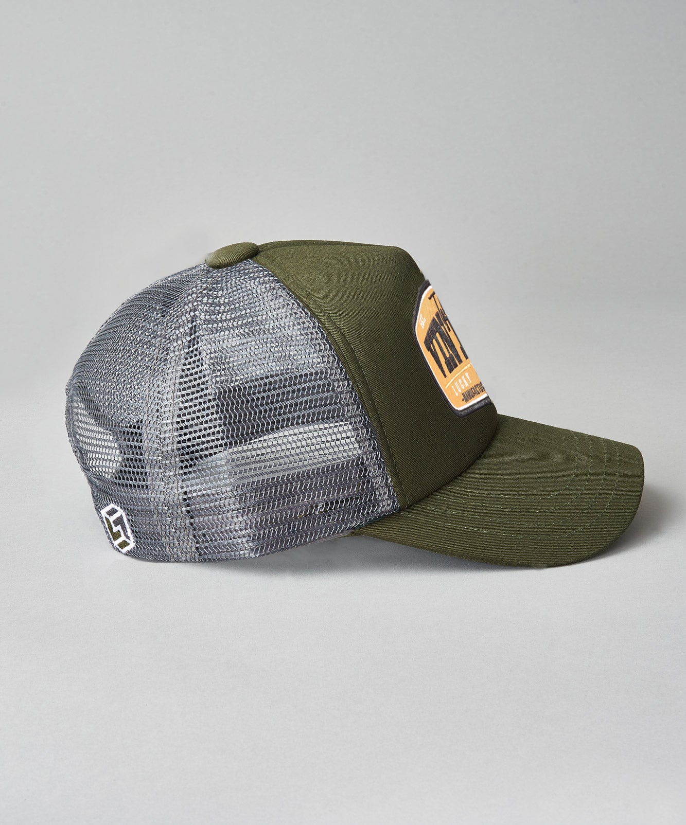 Khaki structured front with grey mesh back panels