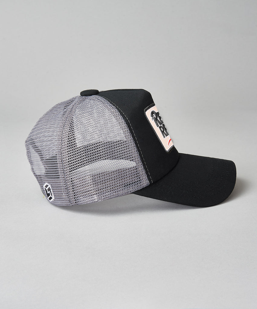 This small-sized trucker cap pairs a black structured front with a contrast grey mesh back for breathability and comfort. Finished with a curved peak and adjustable snapback fastening, it’s built for everyday wear — whether you’re on the road, on stage, or off duty.
